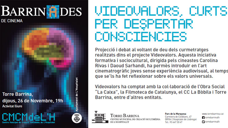 Torre Barrina, Centre Municipal de Creació Multimèdia de L’Hospitalet celebra una nova “Barrinada de Cinema” sota el títol “Videovalors, curts per despertar consciències”.