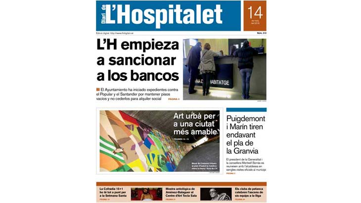 En portada de la publicació destaca que L’Hospitalet comença a sancionar als bancs a través de l’Ajuntament que ha iniciat expedients contra el Popular i el Santander per mantenir pisos buits i no cedir-los a lloguer social.